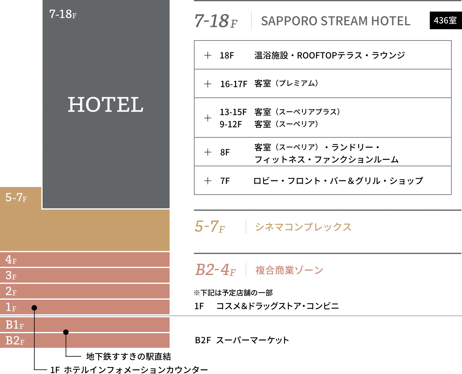 - ※掲載の完成予想CG及び客室情報は、計画段階の図面を基に描き起こしたもので、家具・調度品及び植栽等を含め、実際と異なる場合や変更となる場合があります。