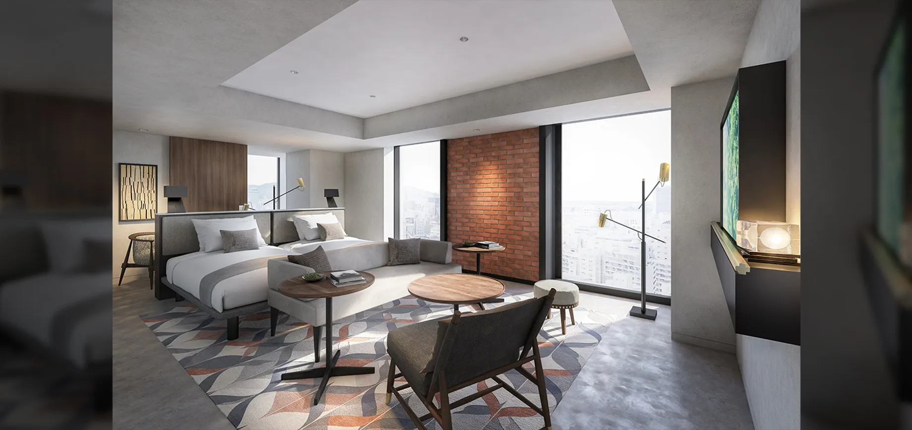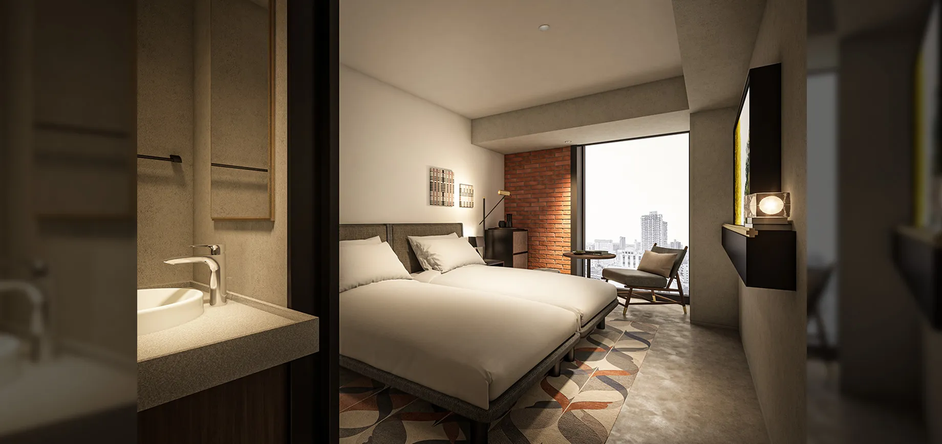 - ※掲載の完成予想CG及び客室情報は、計画段階の図面を基に描き起こしたもので、家具・調度品及び植栽等を含め、実際と異なる場合や変更となる場合があります。